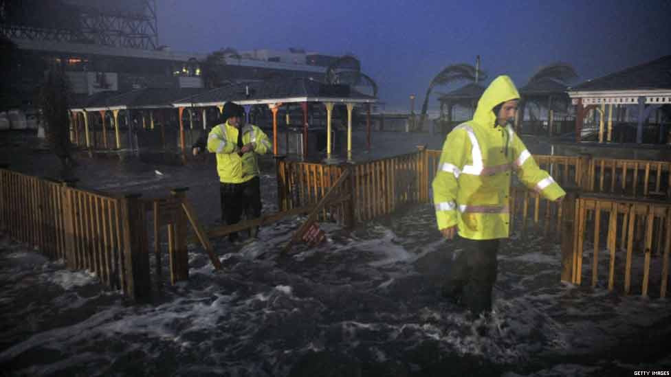 • Cơn bão đổ bộ gần thành phố Atlantic ở New Jersey vào khoảng 8 giờ tối giờ địa phương, tức 7 giờ sáng giờ Việt Nam thứ Ba ngày 30/10 với sức gió hơn 129 km một giờ.