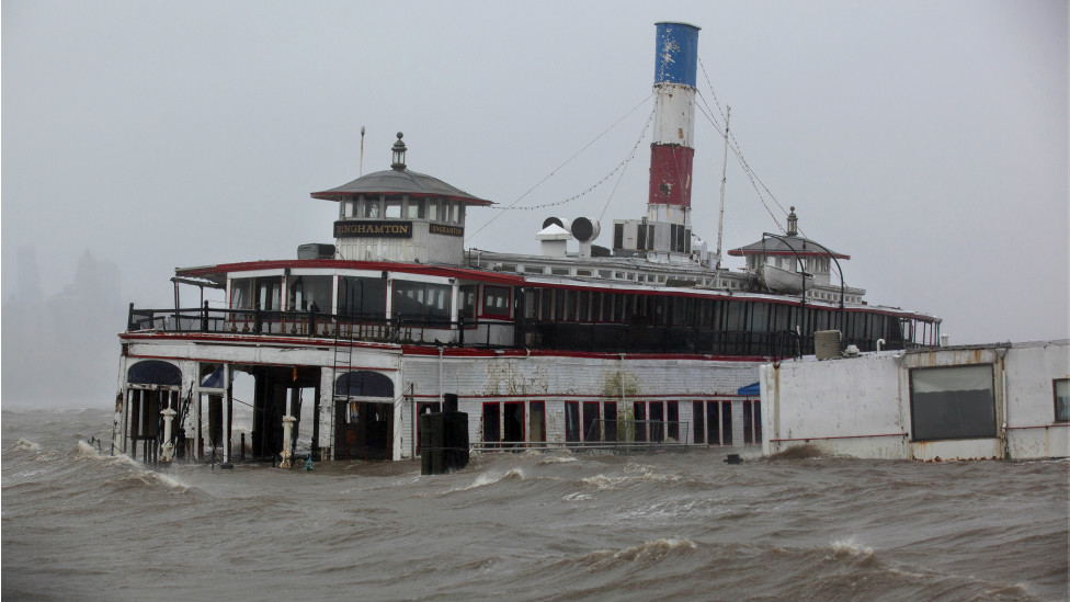 • Con tàu lịch sử Binghamton bị sóng nước sông Hudson nhấn chìm trong cơn bão.