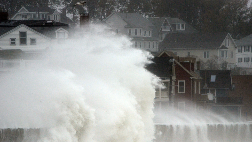 Sóng lớn ở khu Winthrop Shore Drive khi bão Sandy bắt đầu tới bờ biển vùng Massachusetts.