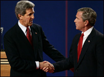 Khi John Kerry đưa thành tích quân vụ của mình làm chủ điểm vận động tranh cử thì chuyện chiến tranh Việt Nam lại tiếp tục gây tranh cãi. Kerry đã tòng quân tham chiến, đối đầu với quân địch, lửa đạn, còn Bush ở nhà gia nhập vệ binh quốc gia, như thế ai anh hùng, xứng đáng hơn để làm tổng tư lệnh quân đội trong khi binh lính Mỹ đang chiến đấu ở Iraq? Với nhiều cử tri gốc Việt, quan điểm phản chiến của Kerry đã có ảnh hưởng đến lá phiếu của họ. Nhiều người tin rằng tổng thống W. Bush sẽ cứng rắn với Hà Nội hơn Kerrey, như họ đã tin là đảng Cộng Hòa có truyền thống chống cộng hơn đảng Dân Chủ. Còn phía nhà nước Việt Nam tin nếu Kerry trở thành tổng thống, chính quyền Mỹ sẽ dễ dãi và tạo những quan hệ tốt đẹp hơn với Việt Nam. Chính vì thế khi báo chí Mỹ nhắc đến tấm hình Kerry chụp chung với nguyên Tổng Bí Thư Ðỗ Mười được trưng trong Bảo Tàng Viện Tàn Tích Chiến Tranh ở Sài Gòn thì ngay sau đó đã được lệnh tháo xuống vì e ngại nó có tác dụng không tốt với Kerry trong giới cựu chiến binh Hoa Kỳ. Rồi sau lại được treo trở lại vì Hà Nội thấy làm thế là tỏ ra quá lộ liễu trong việc ủng hộ Kerry, mà trong thâm tâm họ rất muốn Kerry thắng cử. Những cử tri người Mỹ gốc Việt và nhà nước Việt Nam khi chỉ tin vào một đảng cầm quyền ở Hoa Kỳ, dân chủ hay cộng hòa, thì sẽ có lợi - hoặc không thuận lợi - cho những mục tiêu chính trị là một sự tin tưởng sai lầm.