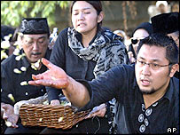 Hôm Chủ nhật, một đoạn băng ghi hình được công bố đã cho thấy một trong những nghi phạm đánh bom đi vào một nhà hàng ở Kuta, chỉ ít phút trước vụ nổ. Đoạn băng này được ghi bởi một khách du lịch, cho thấy một người đàn ông mặc áo phông đen và quần jeans và đeo một vật gì đó sau lưng. Hắn biến mất khỏi màn hình chỉ vài giây trước khi quả bom phát nổ. Khói đen bao trùm và những tiếng hét kêu cứu được nghe thấy. Con số thiệt mạng Chính quyền đã ước tính con số thiệt mạng là 26 người, nhưng đã sửa lại thành 19 cộng thêm 3 kẻ đánh bom. Phần lớn những người thiệt mạng là người Indonesia, nhưng người ta tin rằng có cả người Úc, Nhật, Hàn quốc và Mĩ. Hơn 100 người bị thương, trong đó 17 người bị thương nghiêm trọng. Phóng viên an ninh BBC Frank Gardner nói Bali là một mục tiêu hấp dẫn đối với nhóm Jemaah Islamiah vì nơi đây có rất nhiều khách du lịch Châu Âu ở một nước phần lớn là đạo Hồi. Tổng thống Susilo Bambang Yudhoyono đã tới thăm hiện trường và nói với các phóng viên rằng các vụ tấn công sẽ làm tăng thêm sức mạnh chống khủng bố của chính phủ. Hai kẻ tị nạn người Malaysia được nghi là kẻ chủ mưu vụ tấn công. Azahari Bin và Noordin Mohamed Top— được tình nghi là lãnh đạo nhóm Jemaah Islamiah đã có lệnh truy nã kể từ vụ tấn công 12 tháng 10 năm 2002. Nhóm này cũng bị tình nghi đứng đằng sau vụ đánh bom tự sát tại khách sạn Marriot ở Jakarta năm 2003 và tại Đại sứ quán Úc hồi tháng 9 năm ngoái. |
