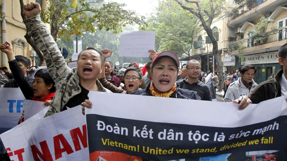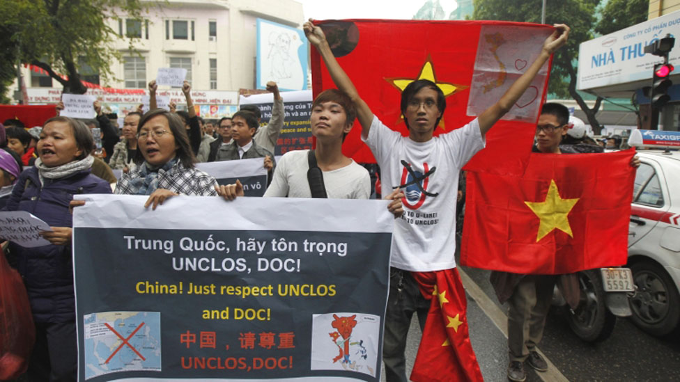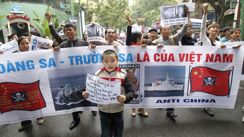 • Đoàn tuần hành hò reo nhiều khẩu hiệu, như 'Hoàng Sa, Trường Sa là của Việt Nam'; 'Đả đảo Trung Quốc xâm lược'... (Ảnh Reuters/stringer)