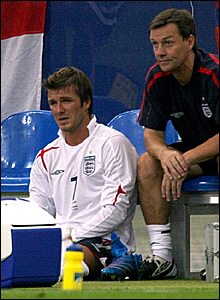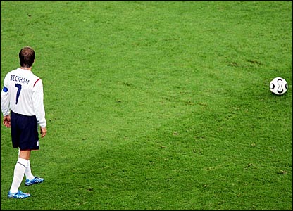 Beckham đau khổ ngồi ngoài, khiến người ta liên tưởng tới những giọt nước mắt của Paul Gascoigne trong giải World Cup năm 1990
