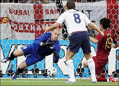 Tuy nhiên, một cú sút phạt của Figo đã tạo cơ hội đẹp cho Tiago chồm lên tấn công, nhưng thủ môn của Anh, Paul Robinson, đã cản được cú tấn công này