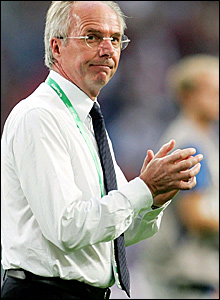 Ông Eriksson tập hợp đội quân đẫm mồ hôi của mình để dặn dò trước khi thi đấu hai hiệp phụ, trong khi các cổ động viên của Anh reo hò cuồng nhiệt