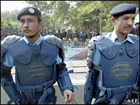 Ông cũng lập lại lời hứa sẽ không còn nắm giữ chức tổng tư lệnh, nếu và khi Tòa án Tối cao hợp thức hóa việc ông được bầu vào chức tổng thống gần đây. Nhưng bà Bhutto cho rằng những những lời nói của ông là 'mập mờ' và 'chung chung'. Một phát ngôn viên của đảng Nhân Dân Pakistan của bà nói hôm thứ Bảy rằng bà vẫn chuẩn bị và tiến hành cuộc diễu hành phản đối từ Lahore tới Islamabad, được bắt đầu hôm thứ Ba. Bà Bhutto bị quản thúc hôm thứ Sáu nhằm ngăn chặn bà đi từ Islamabad tới Rawalpindi để dẫn đầu một cuộc biểu tình. Chính phủ đã cấm cuộc biểu tình đó, nói rằng họ lo sợ có các cuộc tấn công khủng bố. Hàng ngàn những người ủng hộ phe đối lập, luật sư, những người đấu tranh cho nhân quyền vẫn bị giam giữ và các đài truyền hình về tin tức vẫn chưa được phát sóng. | CÁC BÀI LIÊN QUAN Cảnh sát bao vây bà Bhutto09 Tháng 11, 2007 | Trang chủ Cựu thủ tướng Pakistan bị tạm giữ09 Tháng 11, 2007 | Trang chủ Pakistan ‘tổ chức tuyển cử vào tháng Hai’08 Tháng 11, 2007 | Trang chủ Phe đối lập Pakistan liên kết07 Tháng 11, 2007 | Trang chủ Cảnh sát Pakistan tấn công biểu tình05 Tháng 11, 2007 | Trang chủ Pakistan 'giữ nguyên lịch bầu cử'05 Tháng 11, 2007 | Trang chủ Musharraf bắt phe đối lập04 Tháng 11, 2007 | Trang chủ | ||||||||||||||||||||||||||||||||||||||||||||||||||||||||||||||||||||||||||||