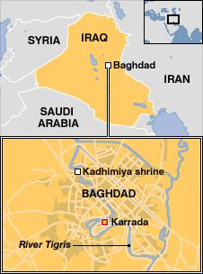 Ít nhất 53 người thiệt mạng và 240 người bị thương trong vụ đánh bom liều chết tại Baghdad và Kirkuk phía bắc Iraq. Vụ đánh bom tự sát của ba phụ nữ ở Baghdad đã diễn ra bất chấp tình trạng an ninh được tăng cường cho cuộc hành hương của người Shia về đền thờ Kadhimiya ở mạn bắc của thành phố. Trong số những người hành hương thiệt mạng có cả phụ nữ và trẻ em, hãng thông tấn Pháp AFP trích lời các quan chức an ninh và bệnh viện đưa tin. Phóng viên BBC ở Baghdad Jim Muir nói các cuộc tụ họp lớn trong các buổi lễ tôn giáo của người Shia vẫn là mục tiêu của các cuộc tấn công bằng bom mà người ta nói do những kẻ quá khích người Sunni gây ra. Những vụ tấn công này đã khiến cho bạo lực sắc tộc tăng mạnh ở Iraq trong năm ngoái. Số vụ tấn công tương tự đã giảm tương đối do lực lượng Hoa Kỳ và Iraq đã tấn công quân nổi dậy người Sunni và dân quân người Shia. Nhưng phóng viên BBC nói rằng rất khó có thể ngăn được những người tấn công tự sát đi bộ lẫn trong đám đông, nhất là những phụ nữ mặc rất nhiều lớp quần áo. Dẫm đạp Cuộc hành hương để kỷ niệm ngày qua đời của Đại giáo sỹ được tôn kính thời thế kỷ thứ tám Musa al-Kadhim sẽ đạt đỉnh điểm vào thứ Ba khi hơn một triệu người hành đạo sẽ tham dự lễ.
