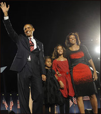 Khi Barack Obama nói với đám đông tại Công viên Grant của Chicago sau lúc biết rằng ông sẽ trở thành Tổng thống Mỹ, ông đã nhắc tới món nợ với người vợ. “Tối nay tôi sẽ không đứng ở đây nếu thiếu sự hỗ trợ không mệt mỏi của người bạn thân nhất 16 năm qua, nền tảng gia đình, tình yêu của đời tôi, đệ nhất phu nhân sắp tới của đất nước…Michelle Obama.” Bà Michelle vừa được ca ngợi lẫn bị chỉ trích. Và sự chú ý dành cho bà sẽ chỉ càng trở nên sâu sắc khi bà bước vào Tòa Bạch Ốc. ‘Người mẹ tối cao’ Michelle Obama là một phụ nữ thành đạt. Tốt nghiệp trường Princeton và Trường Luật Harvard, bà từng là phó khoa ở Đại học Chicago. Bà gặp Barack Obama khi hai người cùng làm trong công ty luật ở Chicago. Ông phải yêu cầu nhiều lần trước khi bà đồng ý hẹn hò. Khi lên show Ellen DeGeneres, ông kể về lần hẹn hò đầu tiên với bà: "Sau lần đi picnic với công ty, tôi đề nghị mua kem cho cô ấy…và chúng tôi đến Baskin Robbins, ngồi trên vỉa hè ăn kem, rồi tôi hôn cô ấy." Cặp vợ chồng này có hai con gái – Sasha bảy tuổi và Malia lên 10. Bà Obama đã nói ưu tiên khi trở thành đệ nhất phu nhân là sẽ làm "người mẹ tối cao" và bảo đảm cho các con ổn định cuộc sống ở Washington DC. Sau nhiều năm, đây sẽ là lần đầu tiên một đệ nhất phu nhân nuôi con trẻ như vậy trong Tòa Bạch Ốc. Định hình chính sách Ngoài vai trò làm mẹ và chủ tiệc, các đệ nhất phu nhân thường chọn những mục tiêu mà họ tin theo: Laura Bush ủng hộ việc dạy học; Hillary Clinton lại chọn y tế.