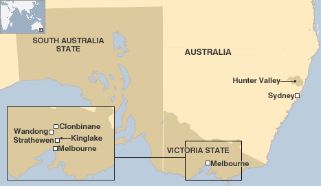 Các đội cứu hộ khẩn cấp đang cố gắng dập tắt các đám cháy rừng lan rộng ở bang Victoria, khiến khoảng 65 người thiệt mạng. Khoảng 30 nghìn lính cứu hỏa đang phải chiến đấu với chín đám cháy lớn, và chính quyền dự báo sẽ còn thương vong. Thủ hiến bang Victoria John Brumby nói ông đang cân nhắc xem xét đề xuất triển khai quân đội từ chính phủ liên bang. Do nhiệt độ tăng và những cơn gió khó đoán định, nhiều thị trấn đã bị lửa thiêu rụi. Dự báo thời tiết cho hay là sẽ còn có thêm đợt nắng nóng dữ dội trong khu vực, vốn đã trải qua nhiệt độ kỷ lục khoảng 47 độ C trong những ngày gần đây. Quan chức cho biết họ đang phải đối phó với tình trạng hỏa hoạn tồi tệ nhất trong lịch sử. Người dân cho biết họ chứng kiến những cột lửa lớn, cây cối thiêu rụi còn bụi khói mù trời khi lửa ‘nuốt chửng’ 30 nghìn hectare đất rừng, trang trại và thị trấn. 'Chìm trong lửa' Ít nhất 100 ngôi nhà đã bị phá hủy ở Victoria và khoảng 14 nghìn ngôi nhà không có điện. Phần đông những người thiệt mạng sống ở một số ngôi làng nhỏ ở phía bắc Melbourne. Sáu người đã thiệt mạng tại thị trấn Kinglake, bốn người tại Wandong, ba người tại Strathewen và một người tại Clonbinane, tất cả đều thuộc bang Victoria. Phóng viên BBC Nick Bryan từ Sydney cho biết toàn bộ Kinglake chìm trong biển lửa. Hàng chục ngàn lính cứu hoả đang phải nỗ lực ngăn chặn ngọn lửa hoành hành tại hai bang khác, New South Wales và South Australia. Tại đây, lửa chủ yếu đã bị khoanh vùng hoặc ở xa khu dân cư. Tuy nhiên, giới chức e ngại là nếu có gió lớn thì lửa sẽ lan rộng. Ngành cứu hoả đang phải dùng tới máy bay thả nước để kiềm chế ngọn lửa. Hàng ngàn tình nguyện viên cũng đang dùng vòi phun nước. Hồi năm 1983, một đám cháy rừng đã khiến 75 người chết, là ngày được nhắc tới với cái tên Thứ Tư Tro bụi. Bản đồ các khu vực bị hoả hoạn nặng nề