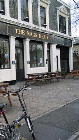 The first place of interest I pass on my journey is my local. Just about everyone in Britain has a local - a pub that's near your house, the one you go to if you want to catch up with your friends in the neighbourhood. And this is my local - The Nag's Head in the east end of London.