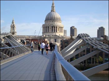 Strangely, perhaps, as I carry on walking and thinking about these things I am not depressed at all. I hope I haven’t depressed you! The sun is shining, and despite Shakespearean and Bolivarian gloom, everyone seems to be smiling. And the second thing I wanted to slip in about getting to work is this view, as I walk across the Millennium Bridge to cross back to the northern bank of the Thames, I am walking straight towards St Paul’s Cathedral.