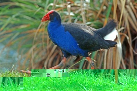With their bright blue plumage and red beaks, they easily stand out against the New Zealand greenery, particularly when their white tail feathers begin flashing in alarm. You'll find their images on all manner of art and craft works. Ask any visitor to New Zealand what bird they remember most, and they will more than likely answer, "The Pukeko!"