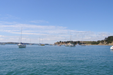 Auckland, I already told you, is called "the city of sails", so I went once sailing in the Harbour with my husband and our friend John. Actually we went by John's sailing boat! It was just amazing, no noise, except for the ocean and the wind. We stopped in a very small island and we had a swim there. It was fabulous, the sand was orange and the ocean was just turquoise. Here there is a picture of that day.