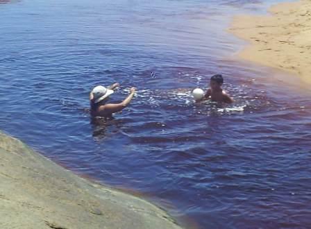 After the very long track, we reach the beach and after the not so short walk along the sand, we arrive in the paradise between the sea and the lake. Sometimes the sea and the lake mix their waters and it’s lovely to see. The warm waters of the lake look like coffee what has nothing to do with pollution. On the contrary, they are extremely clean. The colour comes from the plant called Lanolina (in Portuguese) that grows in abundance around the lake and is worthy for hair . The bath in the lake is absolutely refreshing for mind and body.