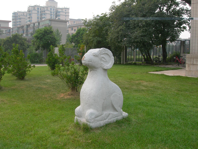 It is a corner of a museum. It is near my parents’ home. This stone sheep looks smiling.