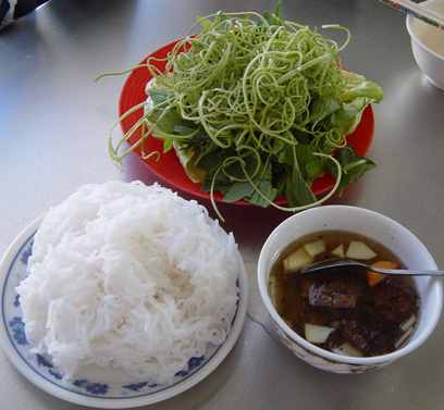 I like to eat rice noodle very much, and there are so many dishes made from rice noodle. First one is Bun Cha (Rice noodle and Grilled meat):