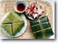 The next one is the traditional food which we eat on New Year only, it's "Chung Cake". The cake is made of rice, pork and green peas.