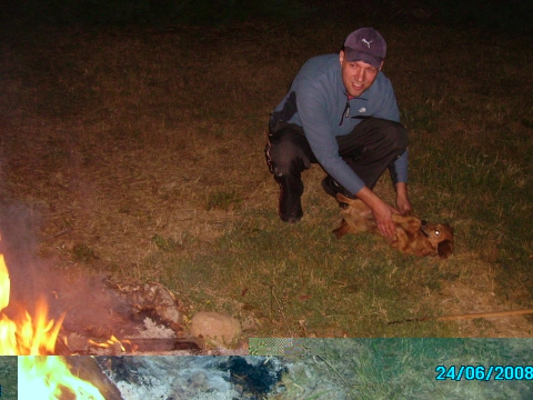 You'll be able to catch a glimpse of my sister this time ... and of Pirat, who was at first very excited that something was in the air, but then was very scared of the fire so I had to fiddle with him a bit