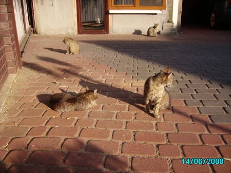 ...and one of our cats, basking in the afternoon sun. Can Amjad count how many there are? He might be surprised to hear that we've got more than twice as many in total! Actually, this has become a serious problem for us: when we first started living here, we welcomed the first two cats very warmly (remember we originally come from Warsaw, a big city, and had never had any experience of country life, so for a long time we didn't realise that cats can be more of a nuisance than anything else); the cats however multiplied very vey quickly, and though at first we managed to give the new-born kittens away, to friends and whoever else wanted a pet, it soon proved impossible to get rid of all those new generations. No birth control medicine was really successful in their case, so in the end we started to sterilize them one by one, but this is expensive and time consuming. We sometimes doubt if we are going to win this war in the end... Does anyone else have a similar problem?
