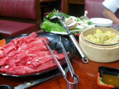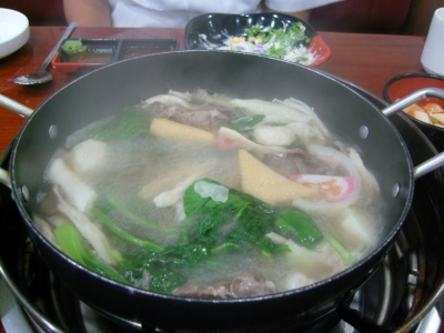 this is called ShabShab. In fact, it's one of japanese food, the meat is beef, and you put some beef and vegetables into the big bowl and slightly boil those, and then you can have them. What I just introduced are not really traditional Korean food, actully those are the food I like.