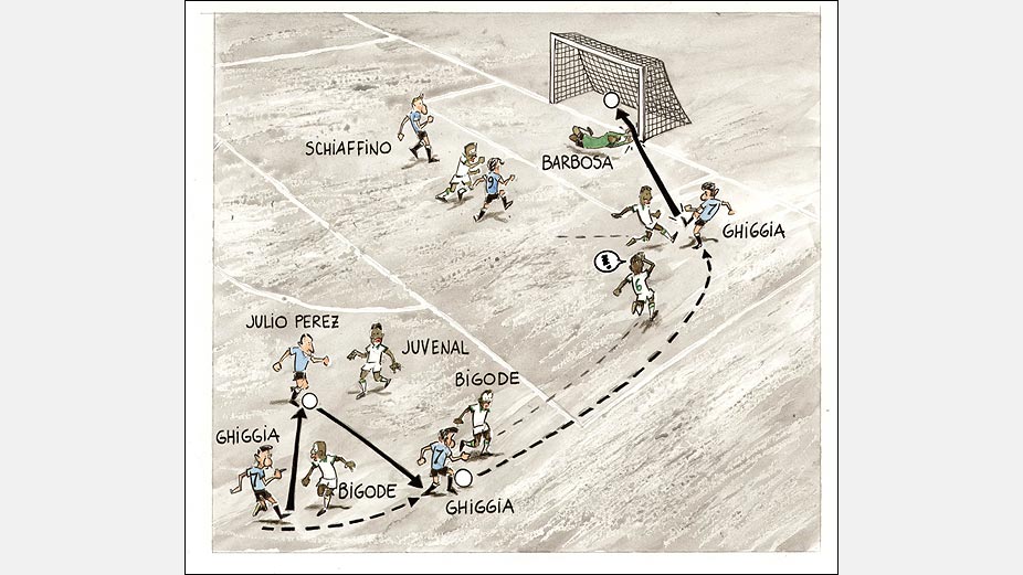 Known for his vibrant style, Aczel's caricatures capture the competition from its beginnings in 1930, when the competition was won on home soil by Uruguay, to the upcoming 2010 tournament in South Africa - the first time the competition will be staged in Africa.