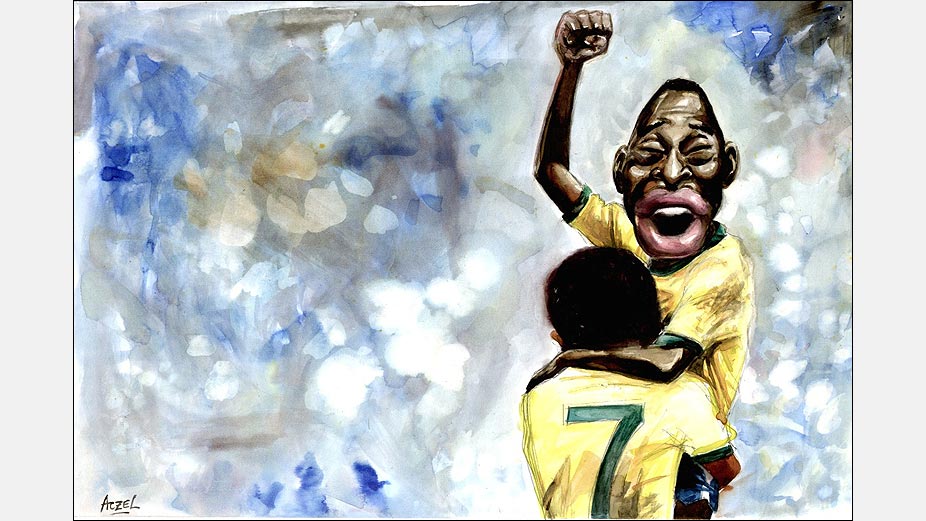 Aczel, who now lives in Germany, has drawn on iconic photographs from past competitions and includes Pele celebrating in 1970, England captain Bobby Moore on the shoulders of his teammates after their one and only World Cup truimph in 1966, and French legend Zidane's infamous exit from the 2006 competition, when he was sent off for headbutting Italian defender Marco Materazzi in the final.
