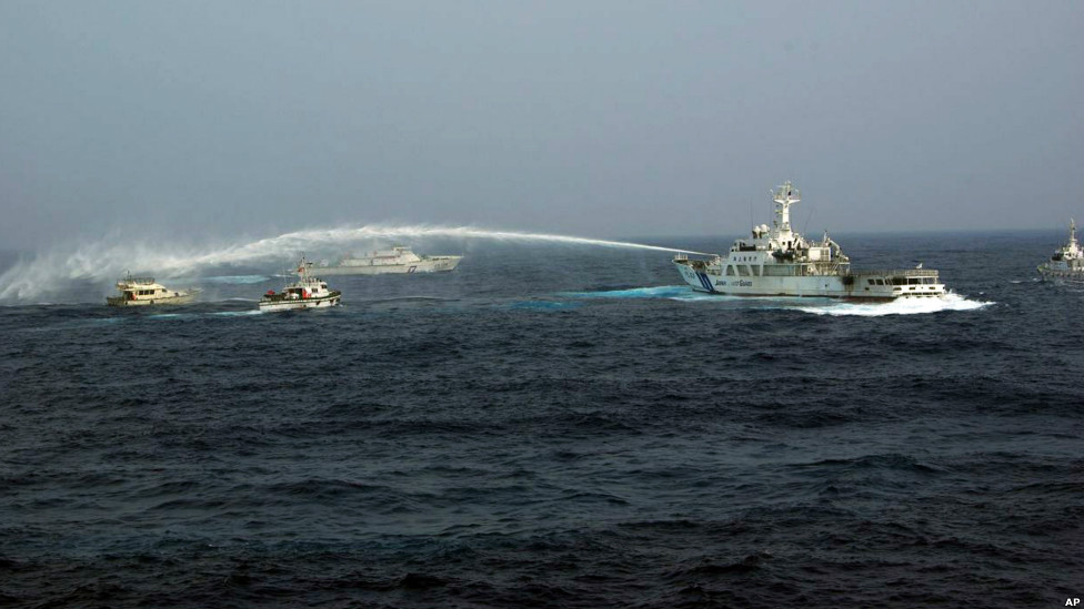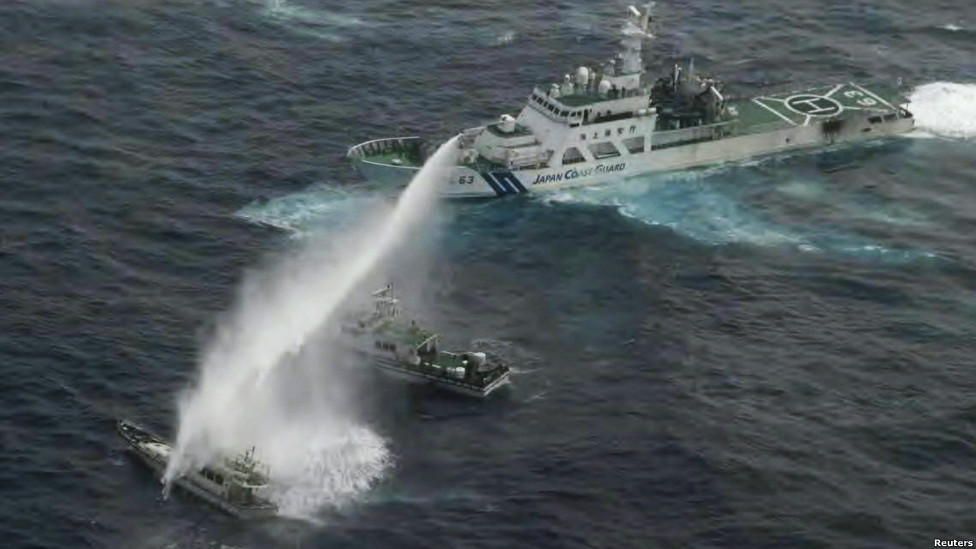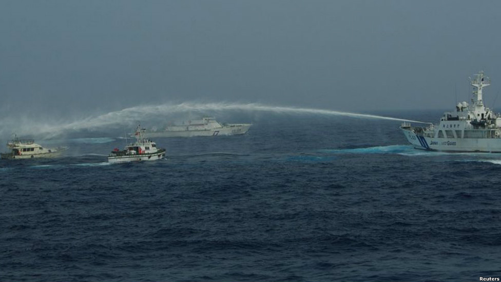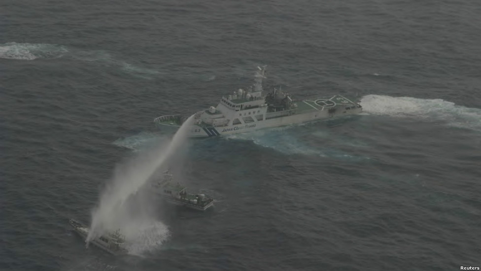 日本海上保安厅船艇用无线电警告台方船艇“不要进入日本领海”,并以水枪喷水示警。
