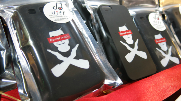 梁振英上任前后爆发国民教育争议,这家店以梁振英反对洗脑为造型制作了一批智能手机保护壳。