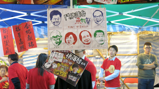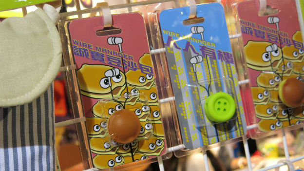 面对民间智慧,每年春节都到维园花市摆摊筹款的各大民主派政党看来也不甘示弱。公民党的摊位就在售卖以日本豆沙包和衣服钮扣为造型的伸缩耳机。