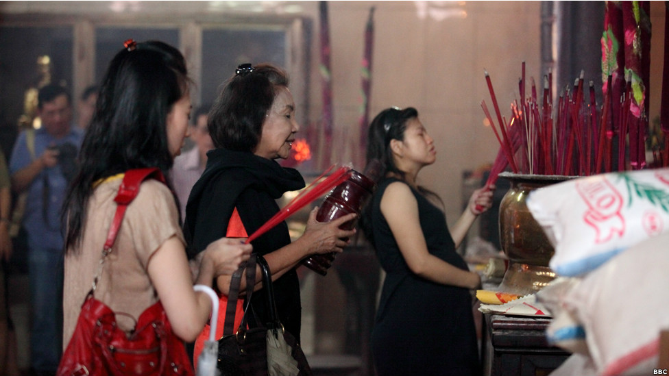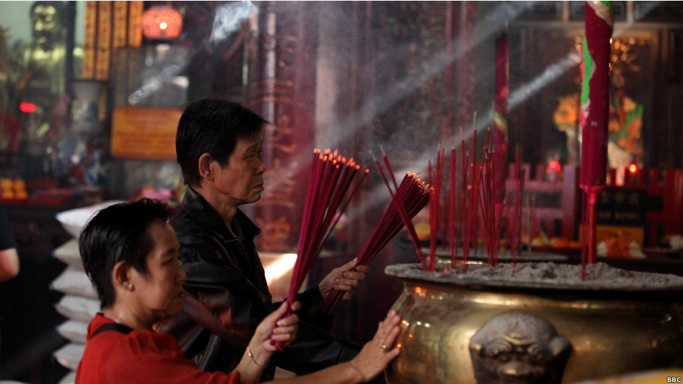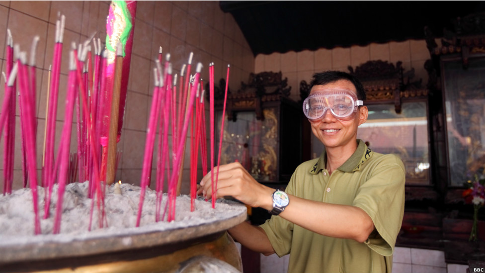 金德院理事梁佑益对BBC中文网介绍说,春节前夕,每天来烧香求佛的华人络绎不绝。他从早上5点忙到晚上7点,由于香火很浓,有时呛得人睁不开眼,他不得不戴上一幅潜水镜保护眼睛。