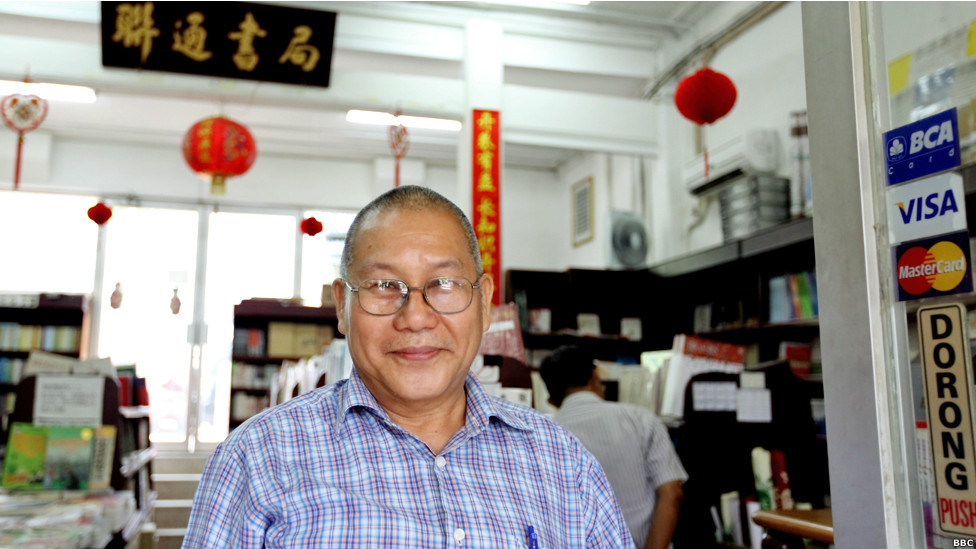 位于班芝兰的联通书局是雅加达只售中文图书的书店。东家李世谋是第二代印尼华人,说得一口流利的普通话。他表示,90年代的排华事件已成过去,华人现在很注重融入印尼文化和族群,与当地人交往。他表示,反而是新来的移民不太在乎这些,应当引起注意。