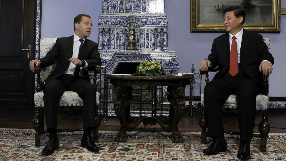 中国国家主席习近平星期六(3月23日)与俄罗斯总理梅德韦杰夫共进早餐