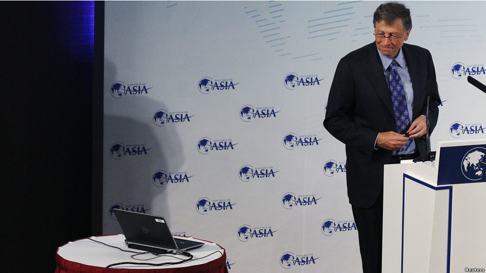 微软创始人比尔·盖茨也出席,如今专心做慈善的他,谈的是“慈善创新”。另一美国富豪巴菲特也出席。