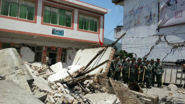 中國雅安市政府應急辦通報說,龍門鄉99%以上房屋坍塌,停水停電。