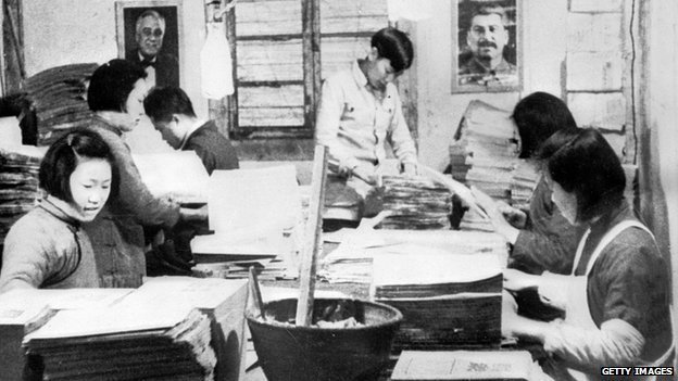從1950到1970年代,中國人被黨組織分配到工廠單位工作生活。大喇叭不停地做宣傳廣播。工人們唱革命歌曲,穿制服並且每天集體做體操。到處是黨的官員,做什麼都需要許可,包括結婚和搬家。