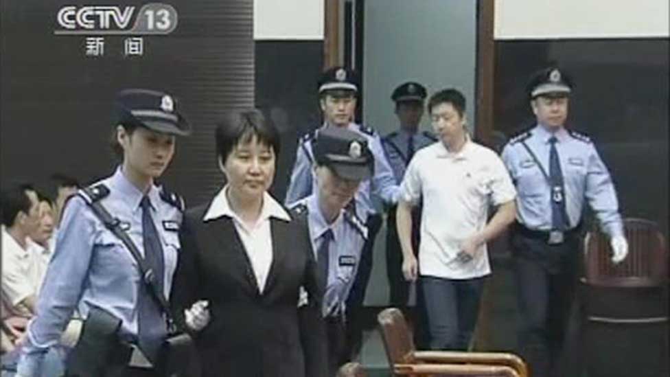 • 中共前重慶市委書記薄熙來的妻子谷開來和薄家勤務員張曉軍被帶進法庭。