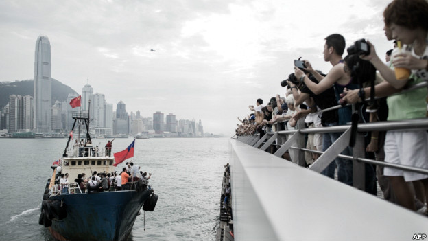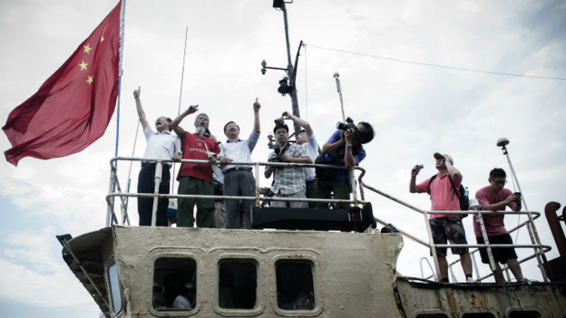 在場民眾說,支持保釣人士再次到釣魚島宣示主權。