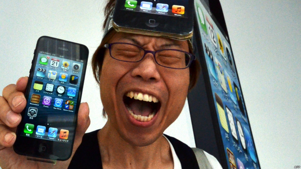 一位買到iPhone5的日本男子欣喜若狂。