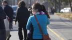 • 槍擊發生後,一位女士焦急地等待她妹妹的音訊。