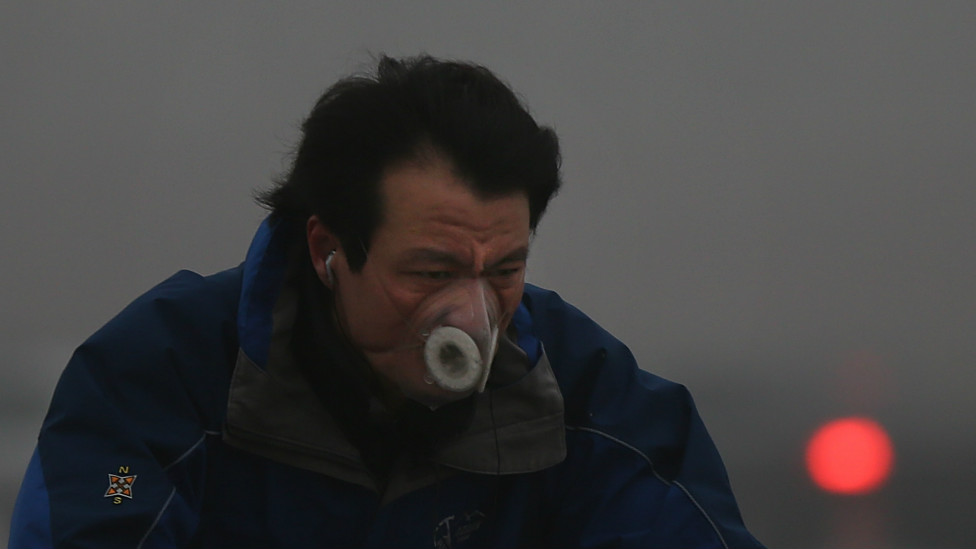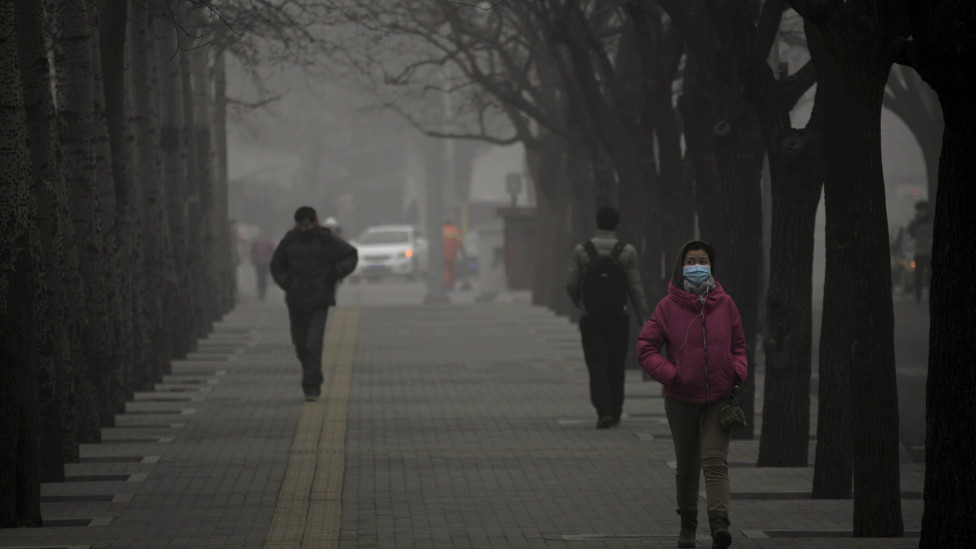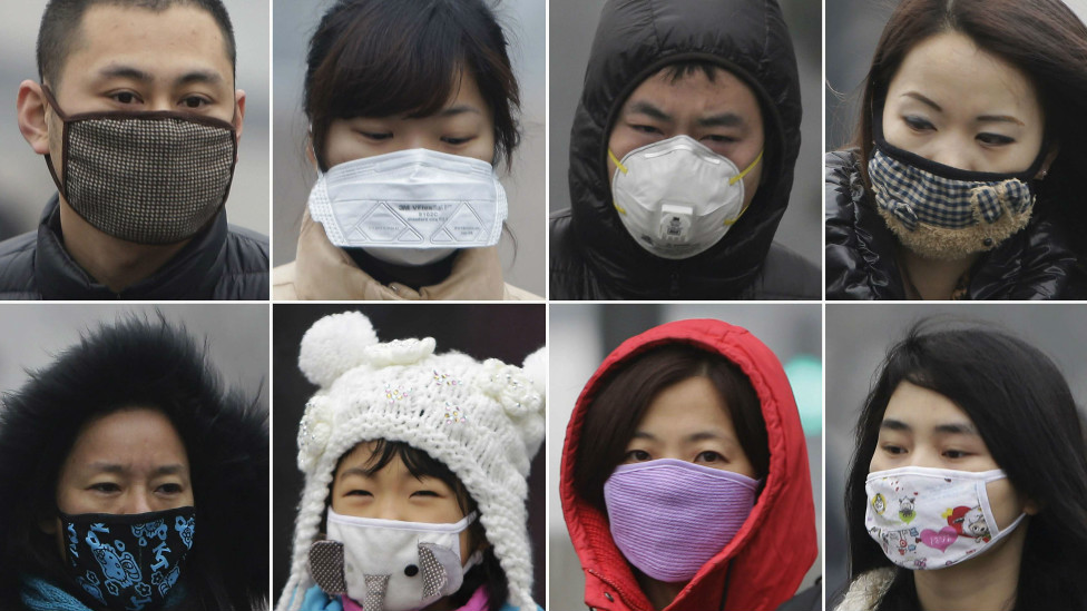 • 北京許多居民出門都要戴口罩,減少吸入污染物。