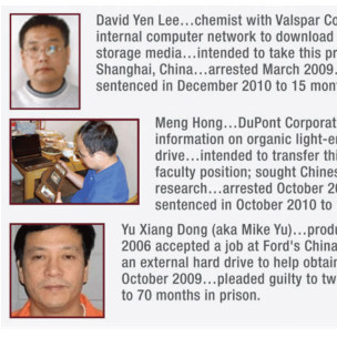 文章列舉了2009-2011兩年期間破獲的7起同中國相關的商業機密盜竊案件。